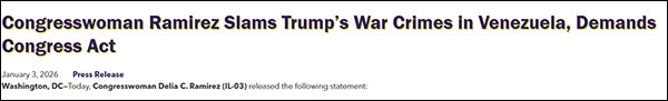 伊利诺伊州民主党众议员德莉亚·拉米雷斯发声明要求弹劾特朗普。